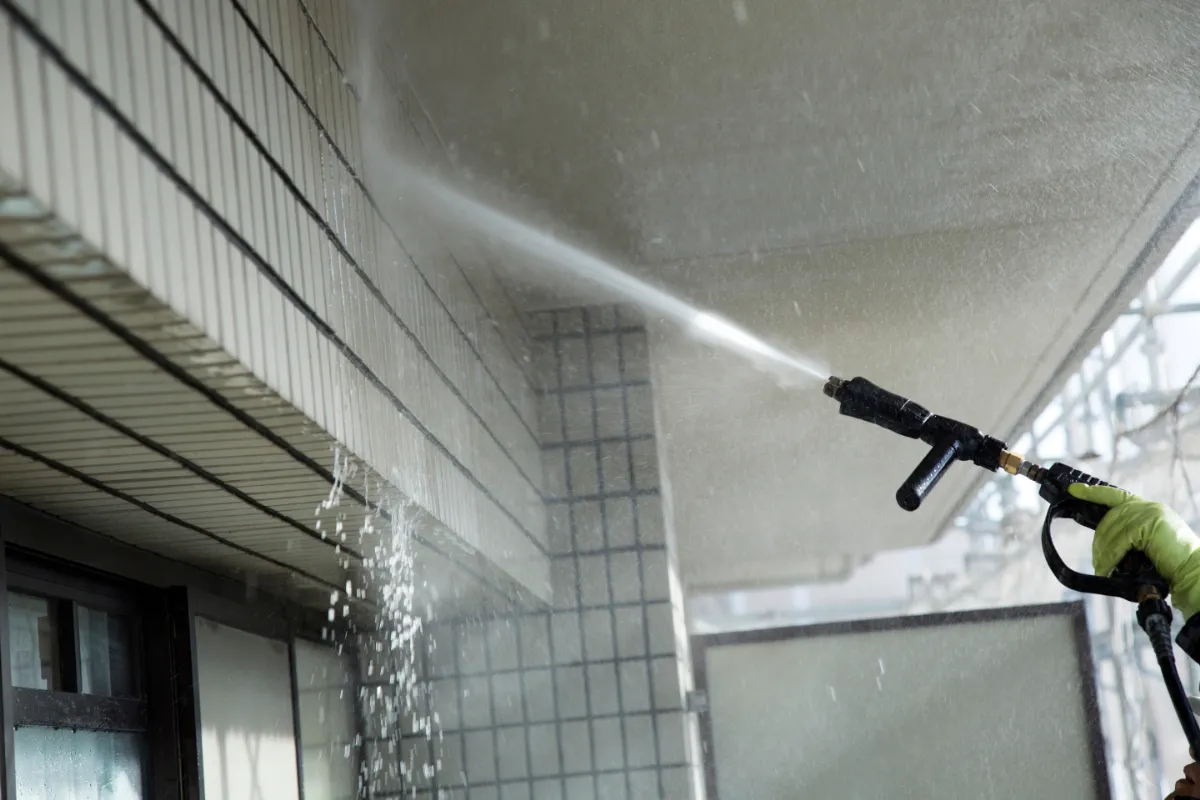 高圧洗浄機を使用して、強力な水流で汚れを根こそぎ落とし、塗料がしっかりと密着するよう丁寧に洗い流します。 -